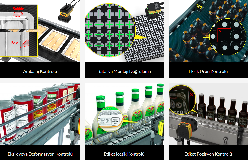Qualitätskontroll- und Fehlervermeidungsprozesse in Produktionslinien sind jetzt schneller und zuverlässiger mit Bildverarbeitungssystemen, die von künstlicher Intelligenz unterstützt werden. Mit der Kombination aus Deep-Learning-Algorithmen und regelbasierten Analysetools können Sie Probleme wie fehlende Produkte, falsche Etiketten oder Verformungen sofort erkennen.